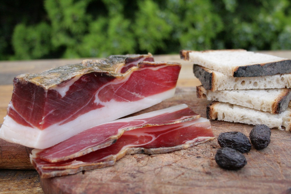 Segue un accurata salagione che varia in base alla pezzatura del prosciutto. Quindi viene lavato del sale residuo e conciato con pepe nero e pepe rosso dolce.
