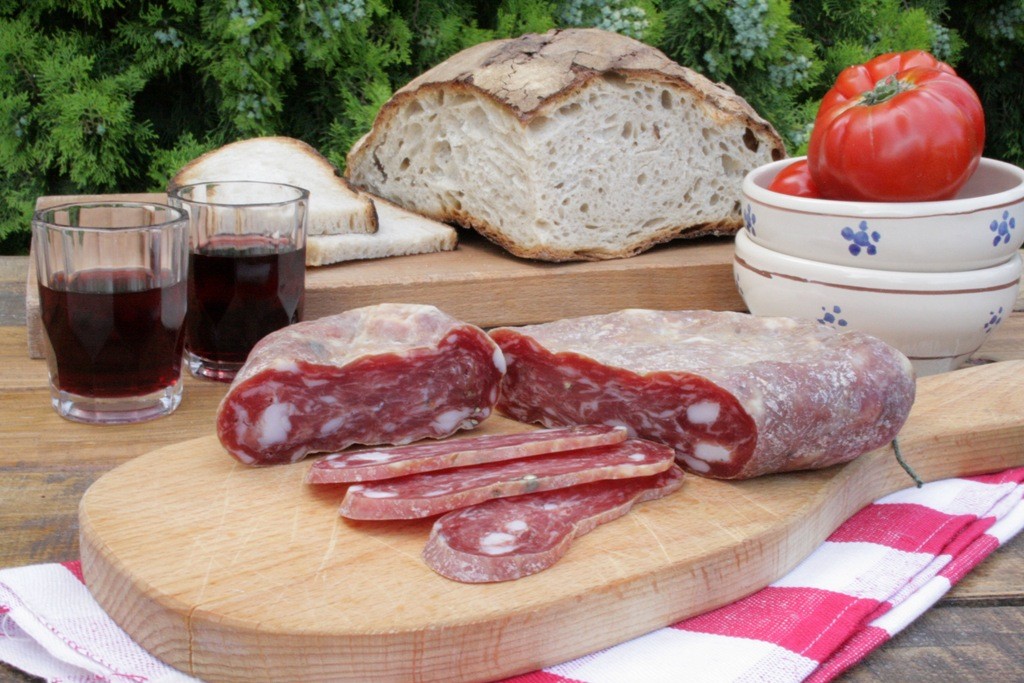 Il composto viene poi insaccato in budella naturali sterilizzate, bucate e legate a mano con spago.